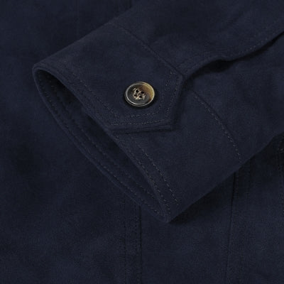 Our new biker jacket is made from reversed kid suede. This uses the whole skin (rather than a split suede) benefiting from the strength of a full grain leather with the grain side on the inside and the soft superfine nap in a subtle olive green on the outside. The design has clean lines with two front slant jetted pockets, an antiqued brass zip and stud fastenings on the collar and cuffs. Inside the jacket is fully lined with two additional jetted breast pockets trimmed in the suede.