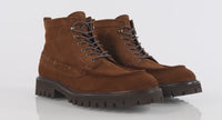 Our new Lumberjack boot is made from a fine nap, soft calf suede in our specialist Mens factory in Spain. The moccasin style is fully leather lined and has a hand-stitched apron, split toe seam and moccasin lacing around the quarters. The silver eyelets are supplemented with a top ski hook and we’ve included a handy leather back pull tab. The chunky cleated sole is as tough as it looks, but is made from a super lightweight compound and topped with a leather stitched rand.