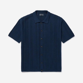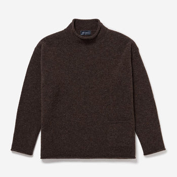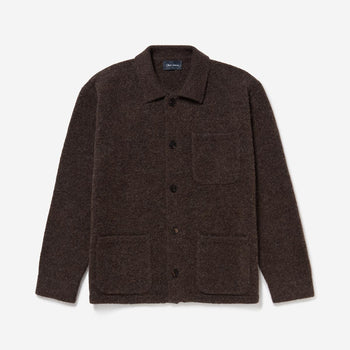 An exciting new development for this season is our wool blend yarn with alpaca in a light grey marl. Prized as the king of wools in the Andes over thousands of years Alpaca fibres are fine with a smooth surface structure, which makes it soft, light and warm. Our Heywood overshirt has one upper and two lower patch pockets with six natural horn buttons. The cuffs and base have a neatly folded hem, and we’ve used a double knit on the collar to create more structure and weight.