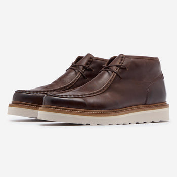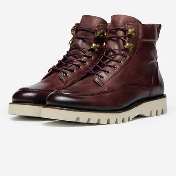 Our Bolhas brown work boot is made from Pheonix Leather from the C F Stead tannery in Leeds. The leather has a unique tannage with a blend of oils to promote water resistance. The upper has an ‘air cord’ apron seam, whereby the leather is moulded over a cord and stitched. This gives the traditional apron detailing, whilst retaining all the benefits of a whole piece of leather – the apron then extends to a bellows tongue, sealing the facings. Inside there is a full leather lining and insock and a padded collar. We’ve chosen a neutral coloured lightweight Live Tech sole with a deep profile and strong cleat.