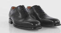 Our premium Oxford toe cap brogue is made in our artisan factory in Le March Italy and now available in classic black pristine meticulously polished calf leather. The upper has a neatly piped topline and is set on an elegant, slightly square toed last, Blake stitched to a leather sole with a concealed channel. As you’d expect we’ve included a full leather lining and insock, with an additional cushioned leather heel pad.
