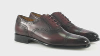 Our premium Oxford toe cap brogue is made in our artisan factory in Le March Italy. Layer upon layer of colour is applied by hand to the pristine calf leather, building a real depth of colour, before antique waxing and meticulous polishing. The upper has a neatly piped topline and is set on an elegant, slightly square toed last, Blake stitched to a leather sole with a concealed channel. As you’d expect we’ve included a full leather lining and insock, with an additional cushioned leather heel pad.